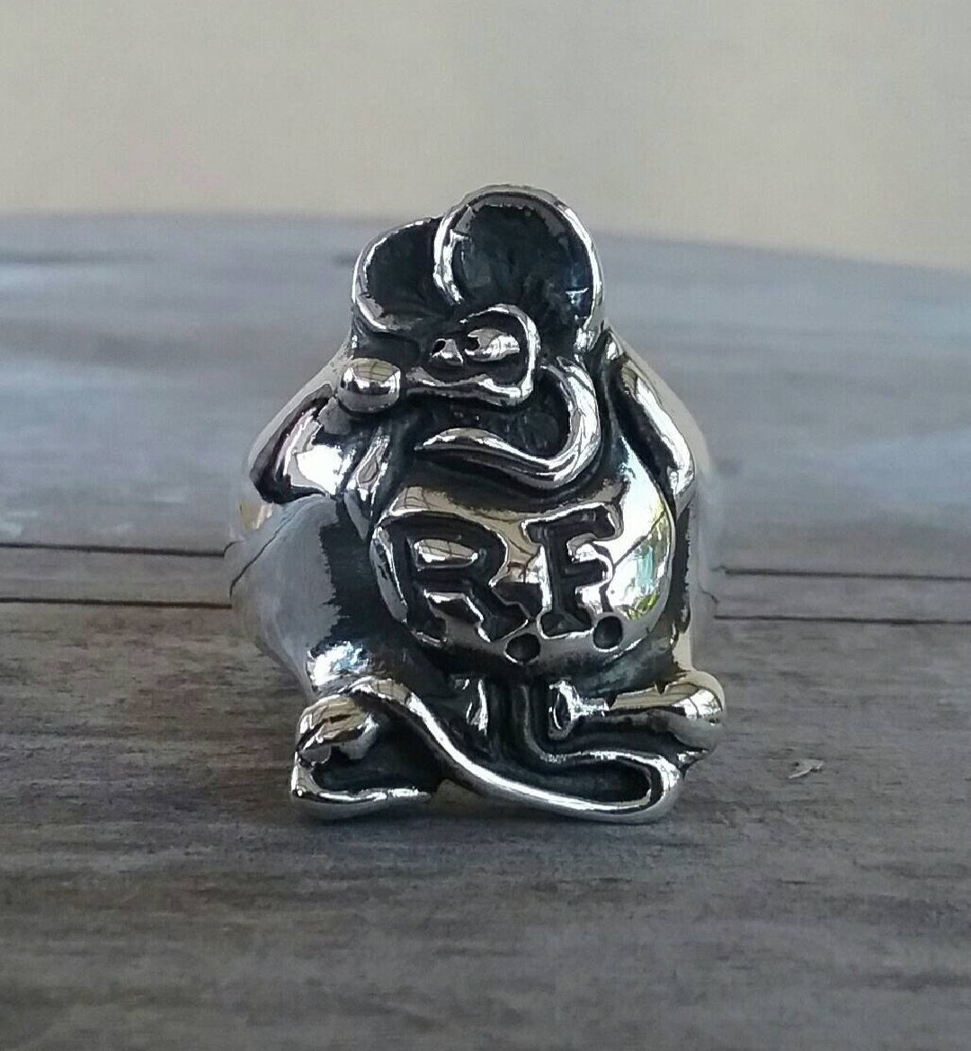 Rat fink ring,sterling silver, vintage chunky ring.