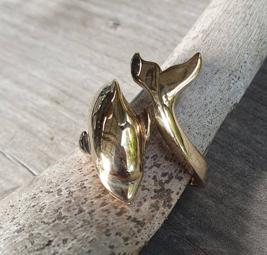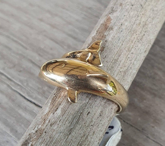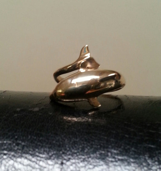gold dolphin ring,solid 9K gold not plated,wrap around porpous,surf,marine,boho,gypsy,new age,