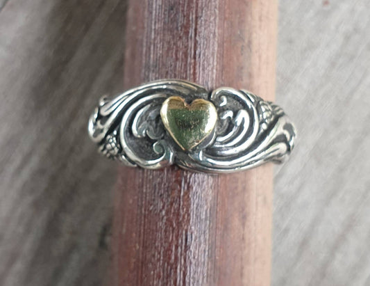 Heart ring,9k Gold and 925 sterling silver,two tone ring,solid 9ct gold heart,sterling silver band,boho,vintage,handmade,goddess,bespoke
