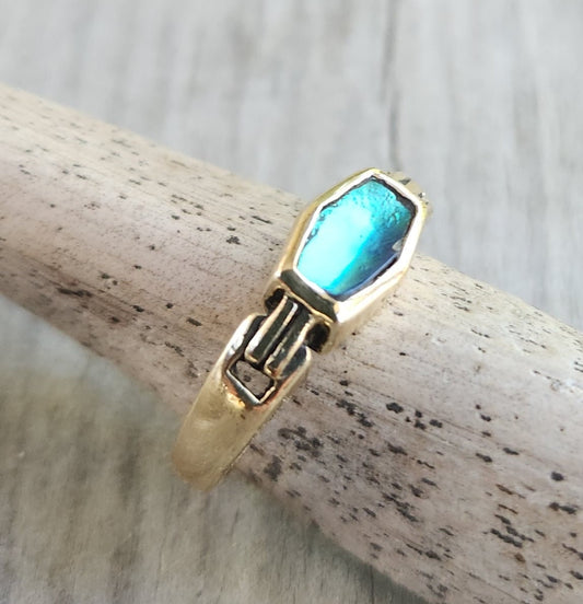 9ct gold paua shell ring,9k upcycled vintage ring, abalone,handmade,recycled petite gold band