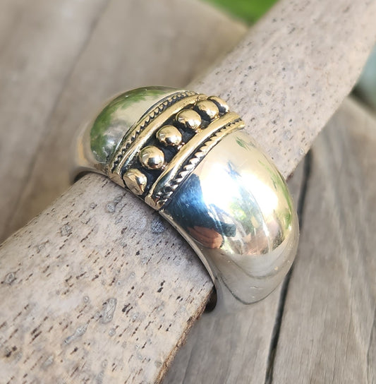 Mixed metal ring,9k gold ball top 925 sterling silver band, mixed metal.