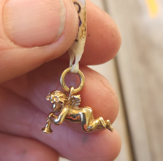 Small gold cupid charm,solid 9k pendant,9ct cherib,love charm