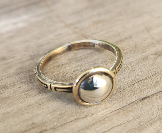 Two tone pinkie ring,9k gold with a sterling silver dome.