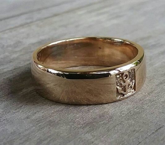 Gold anchor ring,9ct gold,nautical,sailor, rockabilly,hand made,wedding,MADE TO ORDER unisex ,hipster,vintage,surf,wedding band,