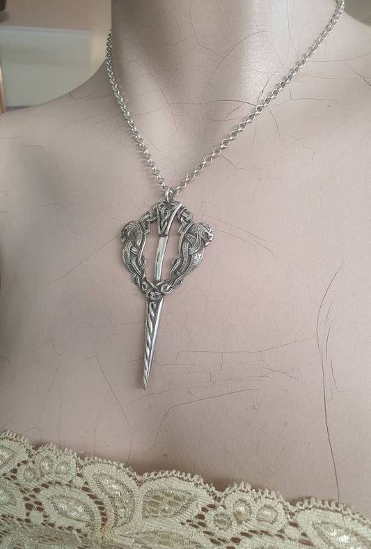 Large celtic pendant,sterling silver,handmade from a celtic cloak pin,celtic dragons,dagger,eelsh dragons