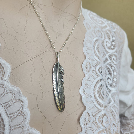 Large feather pendant,925 sterling silver,eagle feather,indian,gypsy,hippy,boho,long necklace