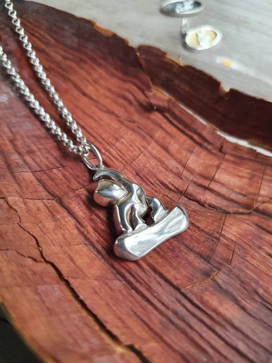 Skateboard rider pendant,snowboard rider,sterling silver,charm,necklace,handmade