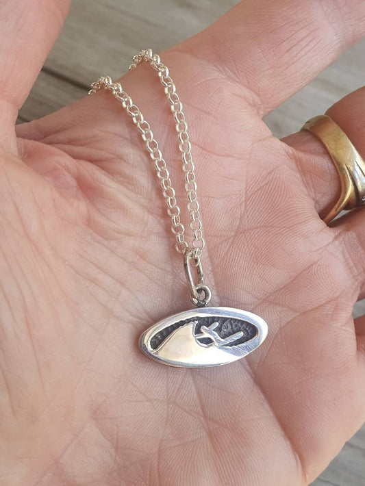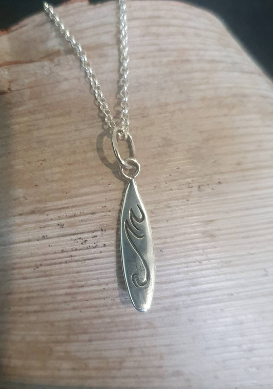 surf board pendant,sterling silver,Long board,surfer necklace, wave pendant,boho