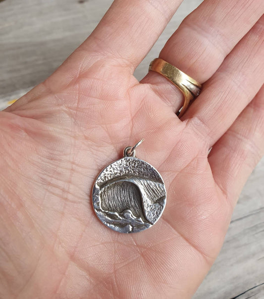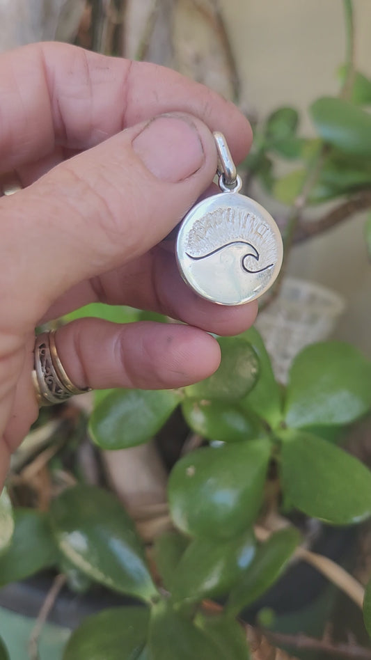 Wave pendant,sterling silver medallion,surfer,surf pendant,sailor,diver, wave,surfer,surf,beach jewelry,handmade,