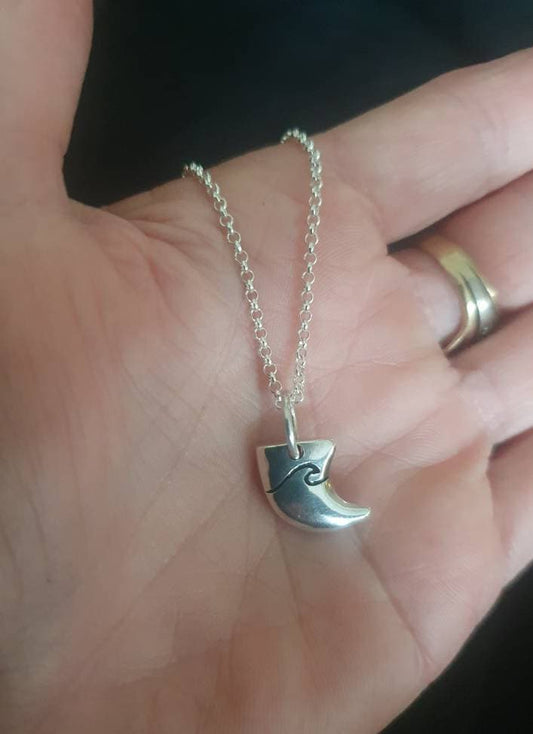 Wave pendant,sharks tooth,sterling silver, surfer,surf pendant,sailor, wave,surfer,surf,beach jewelry,handmade,
