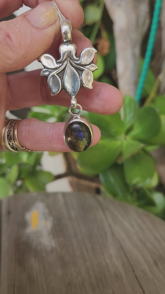 Labradorite flower pendant,925 sterling silver,flower,leaf,boho,gypsy,tribal,handmade,gemstone necklace