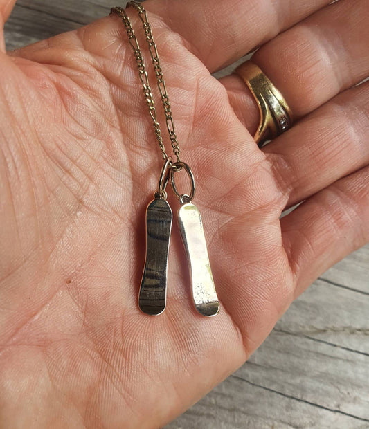 Gold Skate board pendant,solid 10k gold,snowboard,Skater pendant,plain blank