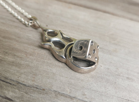 Flame dice pendant, 925 sterling silver,gambling,rockabilly,muscle car pendant