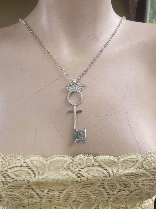 Penthouse key pendant,vintage,1990s,sterling silver,cubic zirconia, cz,