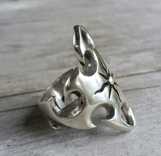 Long scroll ring sterling silver steampunk gothic tribal ring