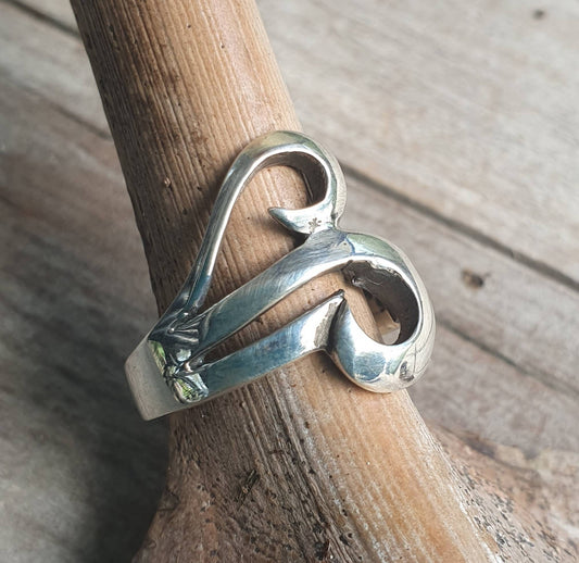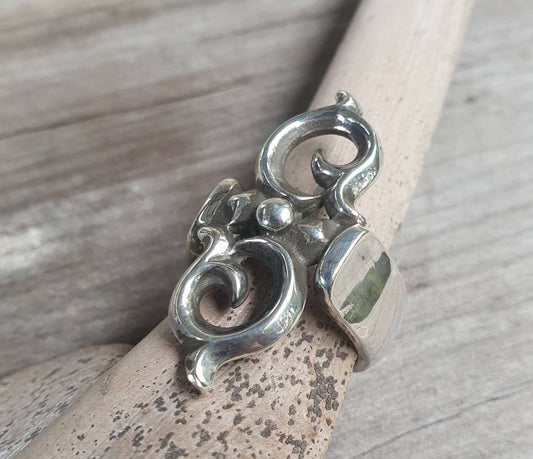 Solid scroll ring, swirl,sterling silver,wedding ,boho,goddess,hippy,gypsy,handmade,chunky ring,deco,vintage,long ring,Maori koru