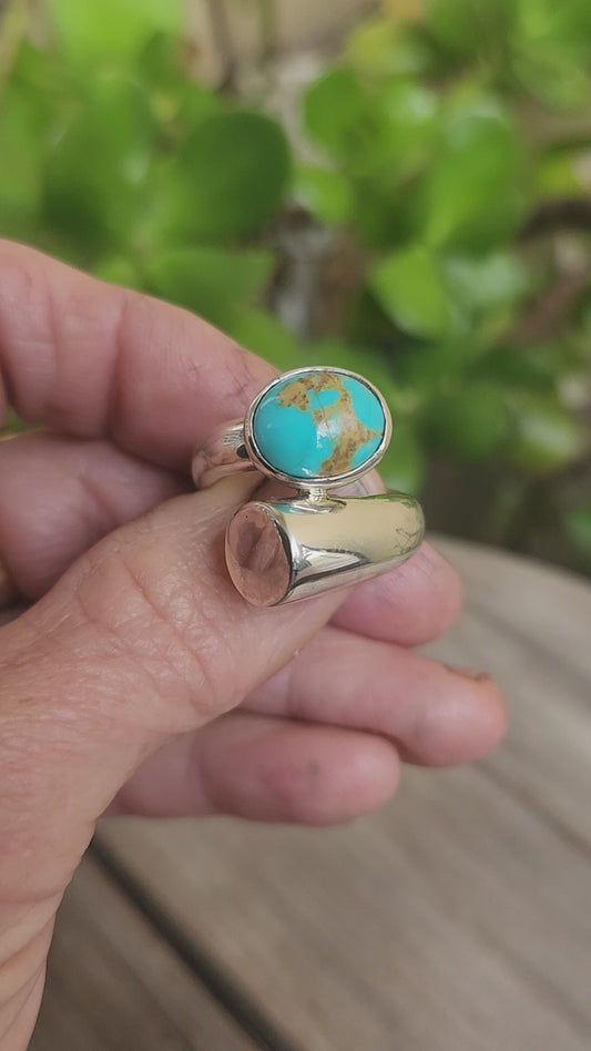 Turquoise chunky ring.925 sterling silver wrap around band,boho chic
