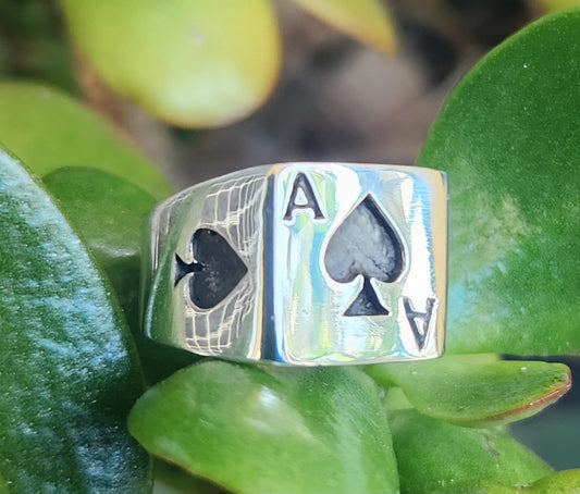 Ace of spades ring,925 sterling silver gambling, cards,Vegas wedding, sterling silver ring,black Jack,signet ring,hand made