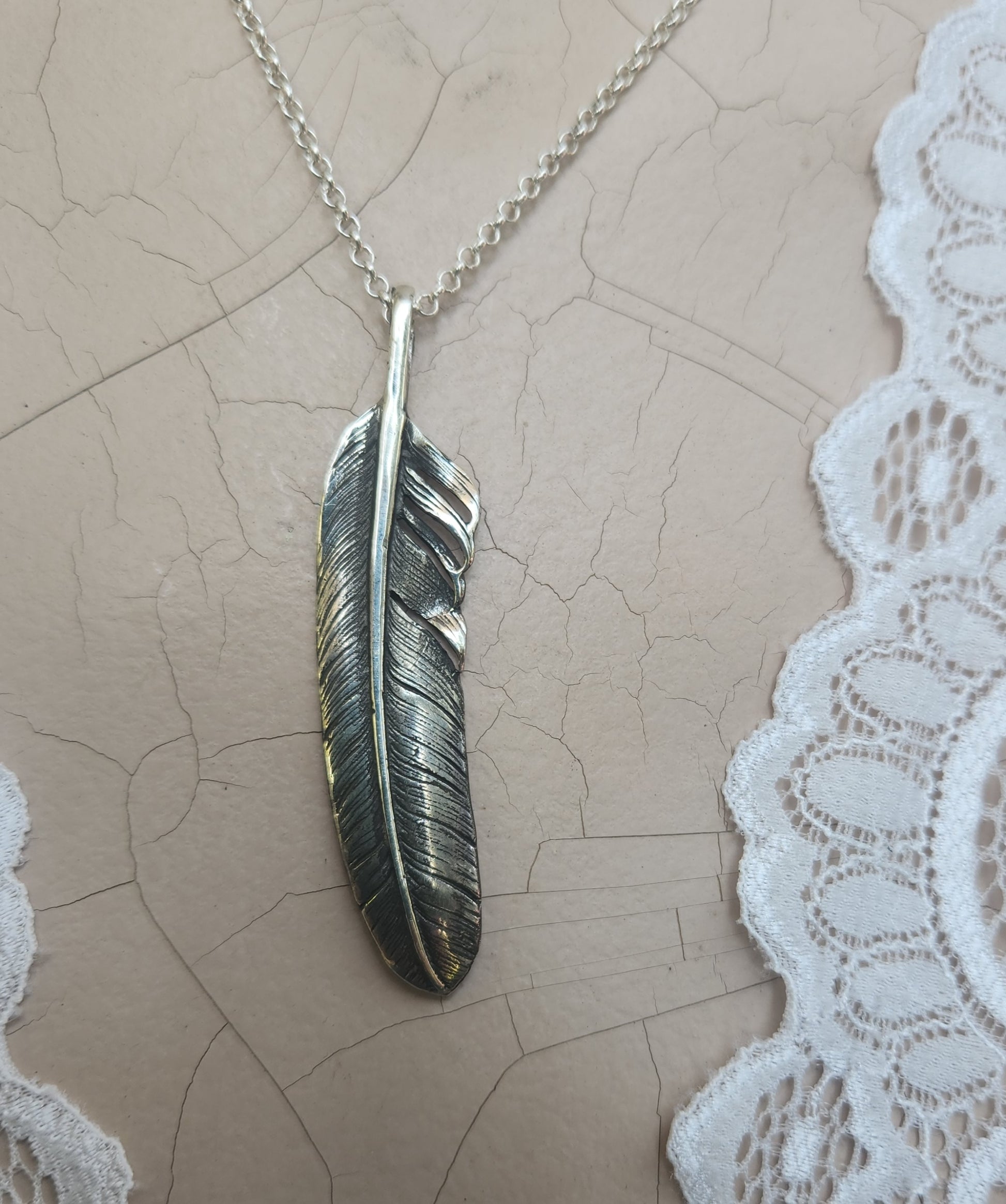 Large feather pendant,925 sterling silver,eagle feather,indian,gypsy,hippy,boho,long necklace