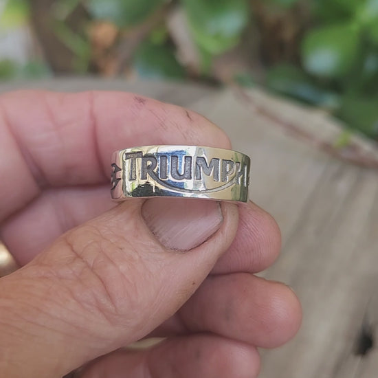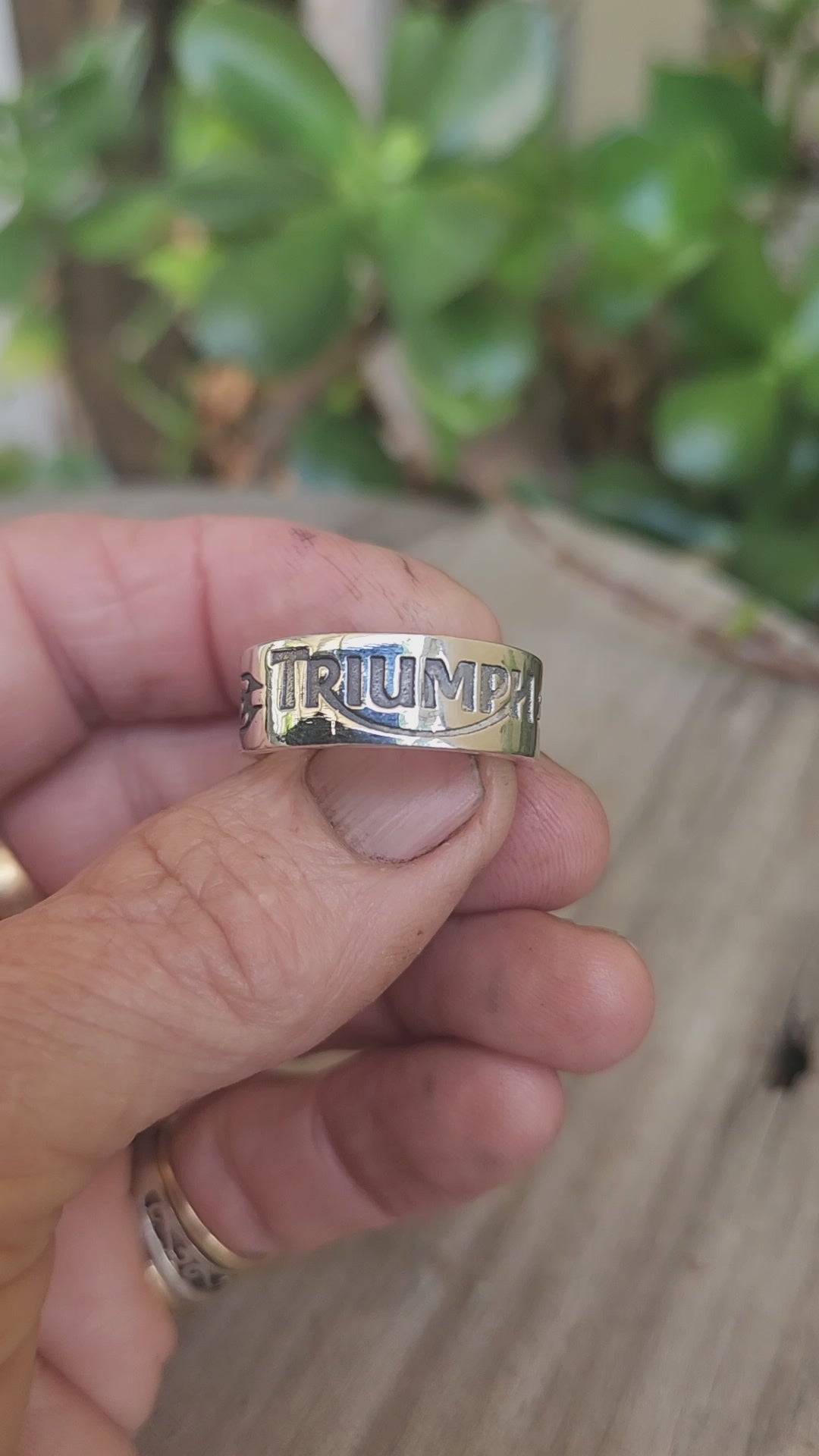 Triumph band,925 sterling silver,motorcycle, biker wedding ring,unisex silver band